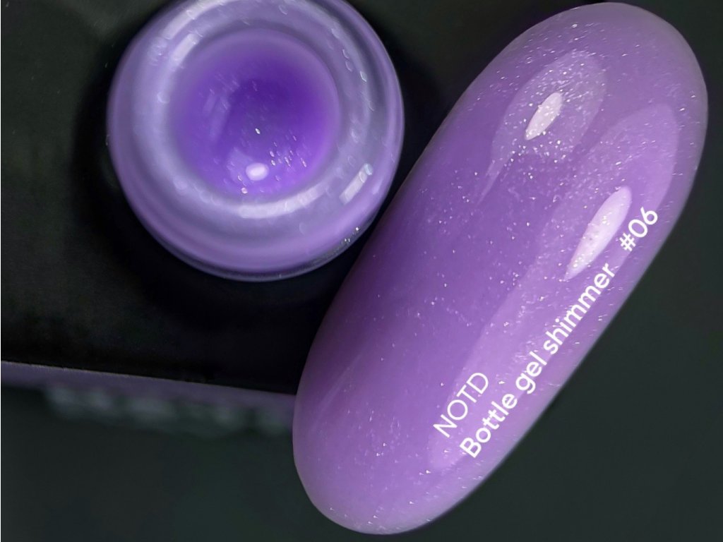 Bottle gel shimmer 06 - fialová se stříbrným třpytem barva.