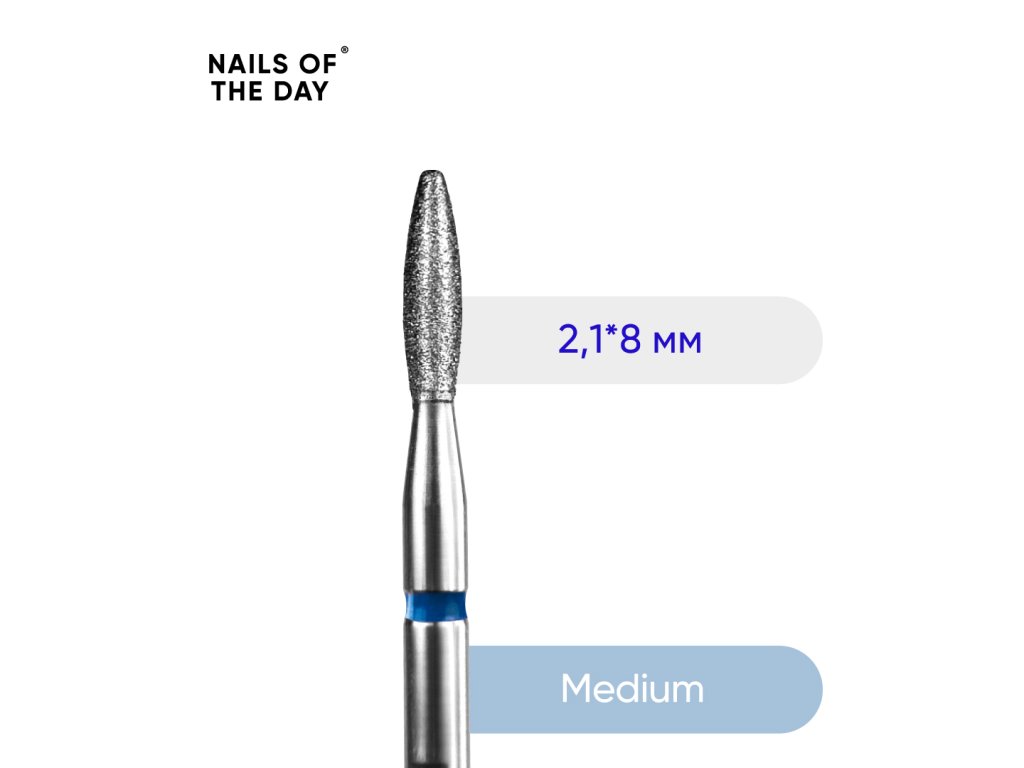 NAILSOFTHEDAY Diamantová fréza plamen kulatý hrot 2.1*8 mm, modrá
