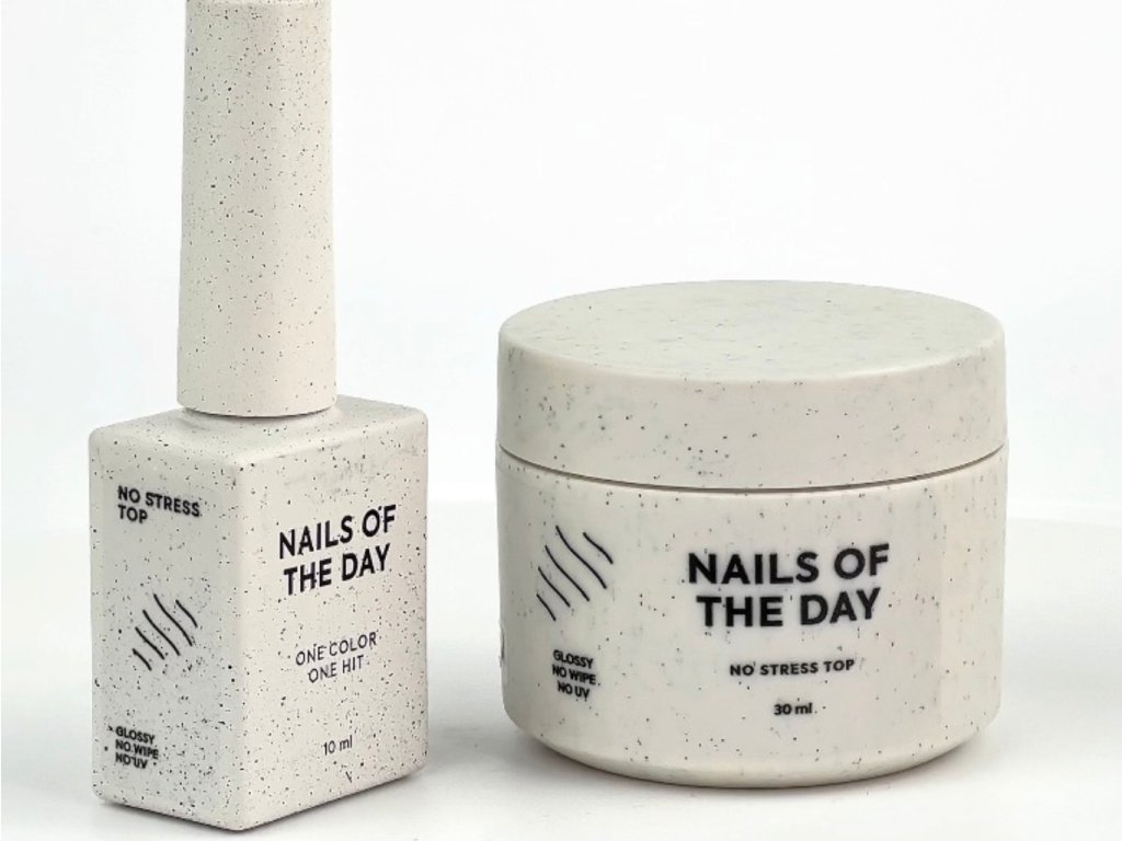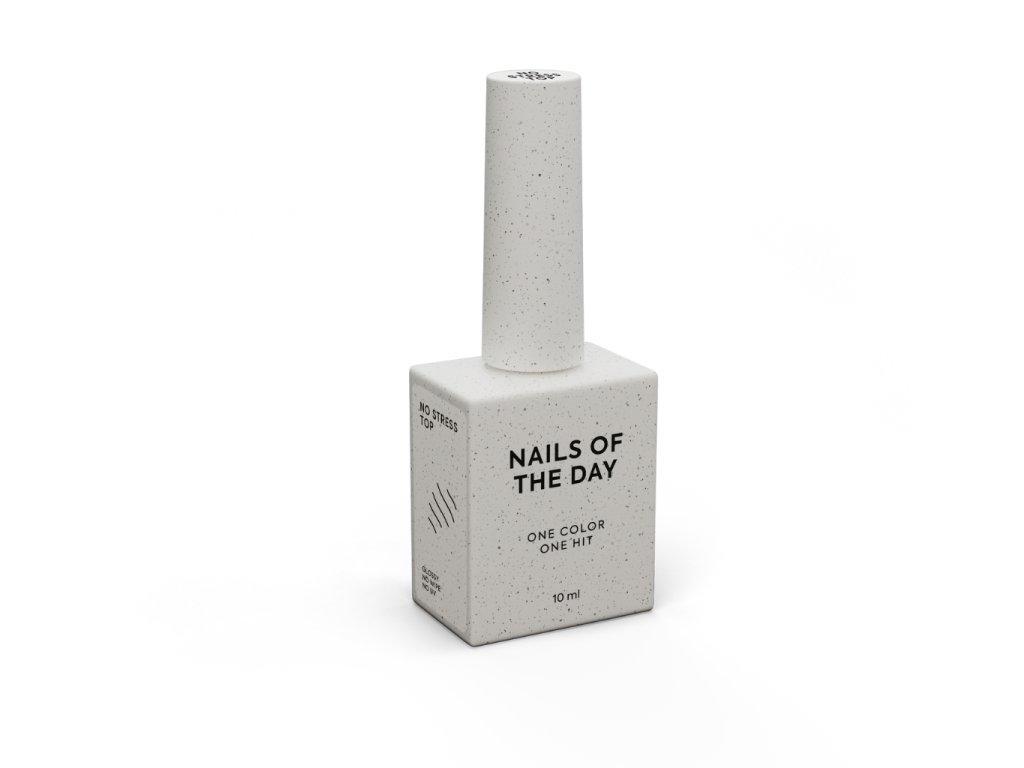 NAILSOFTHEDAY No stress top no wipe - vrchní lak s vysokou odolností proti poškrábání a každodennímu opotřebení. Ideální volba pro aktivní životní styl. Středně hustá konzistence perfektně zafixuje jemné zdobení, slider design i razítka. Pro manikúru, která vydrží – bez kompromisů.
