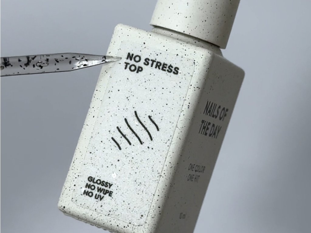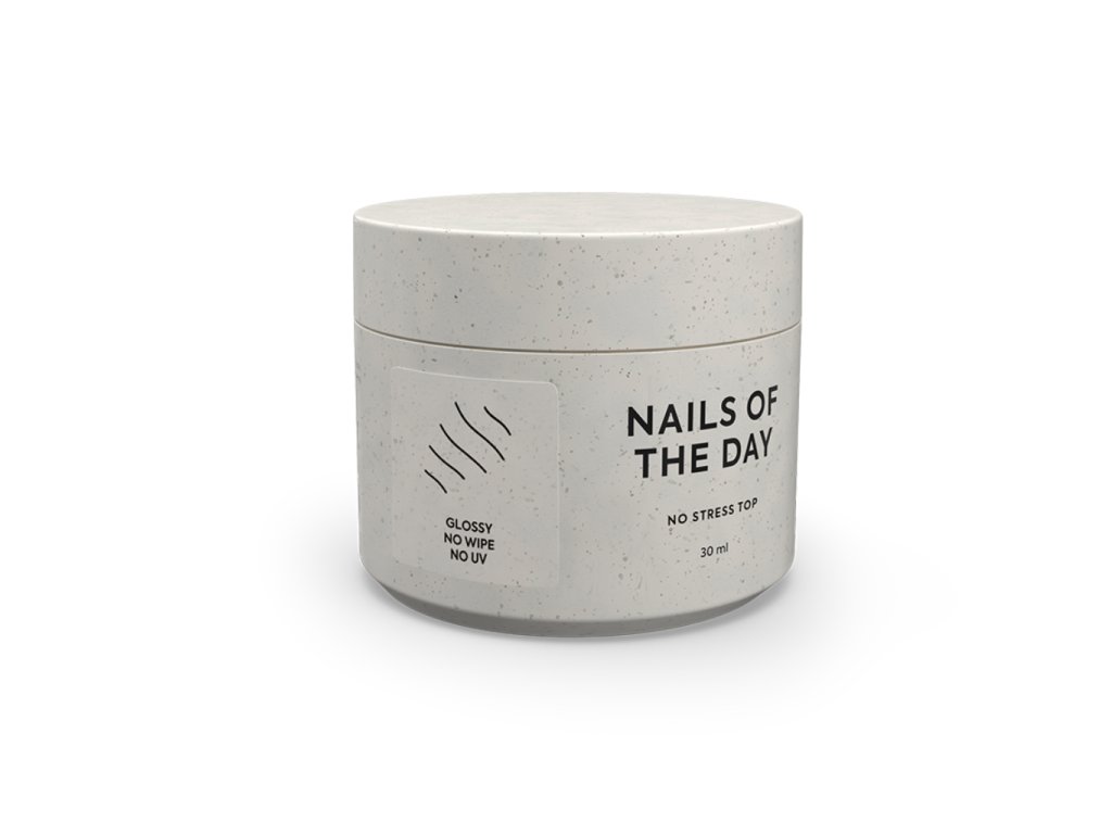 NAILSOFTHEDAY No stress top no wipe - vrchní lak s vysokou odolností proti poškrábání a každodennímu opotřebení. Ideální volba pro aktivní životní styl. Středně hustá konzistence perfektně zafixuje jemné zdobení, slider design i razítka. Pro manikúru, která vydrží – bez kompromisů.