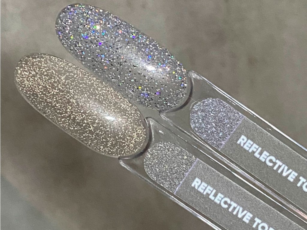 NAILSOFTHEDAY Reflective Top Shimmer – bezvýpotkový top s jemným holografickým šimerem, který odráží světlo a vytváří oslnivý třpyt. Perfektně se vyrovnává, chrání manikúru před škrábanci a odštěpováním. Zachovává intenzitu barvy i lesk až 4 týdny. Nežloutne, má střední viskozitu.