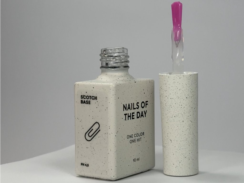 NAILSOFTHEDAY Scotch Base je extra tekutá adhezivní báze s maximální přilnavostí, ideální pro tenké a problematické nehty. Nanáší se v tenké, vtíravé vrstvě a perfektně drží pod gelem, polygem i gel lakem – bez nutnosti použití ultrabondu.